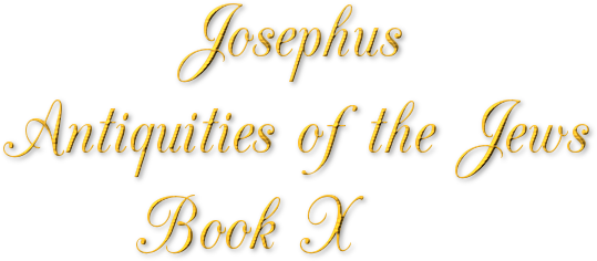 4. When Daniel was come in to the king, he excused himself first, that he did not pretend to be wiser than the other Chaldeans and magicians, when, upon their entire inability to discover his dream, he was undertaking to inform him of it; for this was not by his own skill, or on account of his having better cultivated his understanding than the rest; but he said, God hath had pity upon us, when we were in danger of death, and when I prayed for the life of myself, and of those of my own nation, hath made manifest to me both the dream, and the interpretation thereof; for I was not less concerned for thy glory than for the sorrow that we were by thee condemned to die, while thou didst so unjustly command men, both good and excellent in themselves, to be put to death, when thou enjoinedst them to do what was entirely above the reach of human wisdom, and requiredst of them what was only the work of God. Wherefore, as thou in thy sleep wast solicitous concerning those that should succeed thee in the government of the whole world, God was desirous to show thee all those that should reign after thee, and to that end exhibited to thee the following dream: Thou seemedst to see a great image standing before thee, the head of which proved to be of gold, the shoulders and arms of silver, and the belly and the thighs of brass, but the legs and the feet of iron; after which thou sawest a stone broken off from a mountain, which fell upon the image, and threw it down, and brake it to pieces, and did not permit any part of it to remain whole; but the gold, the silver, the brass, and the iron, became smaller than meal, which, upon the blast of a violent wind, was by force carried away, and scattered abroad, but the stone did increase to such a degree, that the whole earth beneath it seemed to be filled therewith. This is the dream which thou sawest, and its interpretation is as follows: The head of gold denotes thee, and the kings of Babylon that have been before thee; but the two hands and arms signify this, that your government shall be dissolved by two kings; but another king that shall come from the west, armed with brass, shall destroy that government; and another government, that shall be like unto iron, shall put an end to the power of the former, and shall have dominion over all the earth, on account of the nature of iron, which is stronger than that of gold, of silver, and of brass. Daniel did also declare the meaning of the stone to the king but I do not think proper to relate it, since I have only undertaken to describe things past or things present, but not things that are future; yet if any one be so very desirous of knowing truth, as not to wave such points of curiosity, and cannot curb his inclination for understanding the uncertainties of futurity, and whether they will happen or not, let him be diligent in reading the book of Daniel, which he will find among the sacred writings.