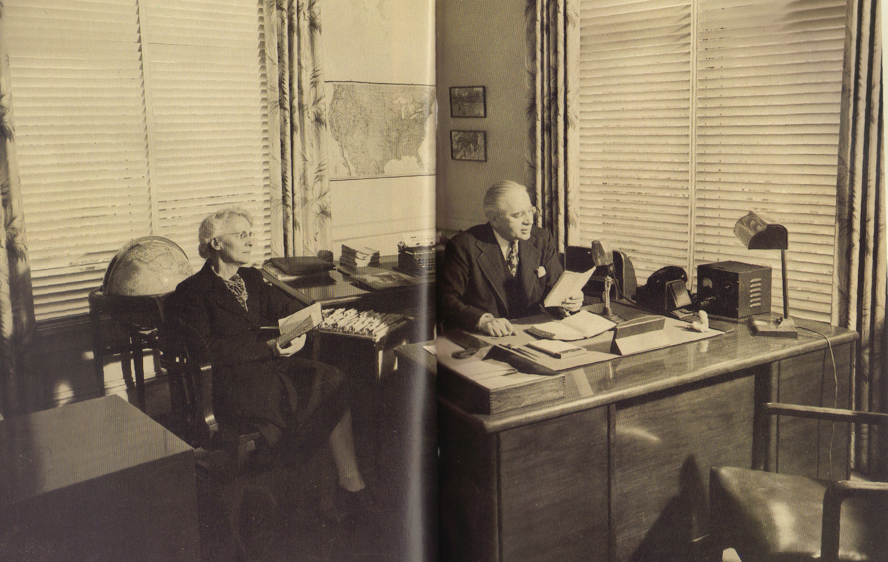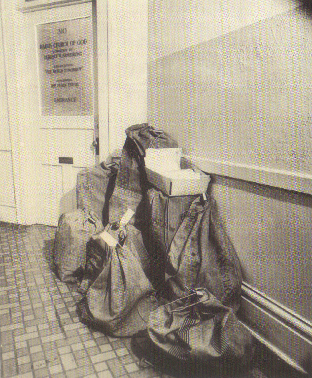 According to usual office standards, we might have thought we needed a better office, with sunlight and ventilation. We might have thought modern steel filing cabinets were a need. I was still using cardboard cartons, obtained free at the grocery store, as receptacles for keeping correspondence files. We might have thought that office desks to work on, if only secondhand, were needed. But we were able to work, these years, on a few old tables we found in our little, stuffy, $5-per-month office room.
