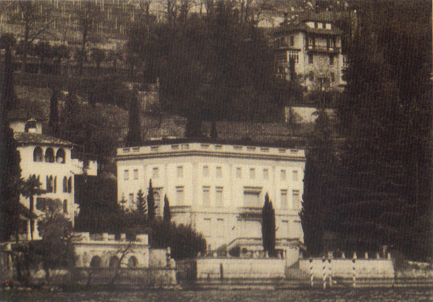 The property was on a hillside. It had been magnificently landscaped, although it appeared not to have been maintained in good condition for a few years. Beside the main building, there was a four-car garage with two servants' apartments. To the east of these buildings was a beautifully contoured slope to a balustrade, and then a six-foot drop of ornamental concrete retaining wall under the balustrade, dropping to a long, level space known as the lower gardens. This space was headed by an ornate concrete tempietto, and ended at the other end with a large square pool and a classic pergola.