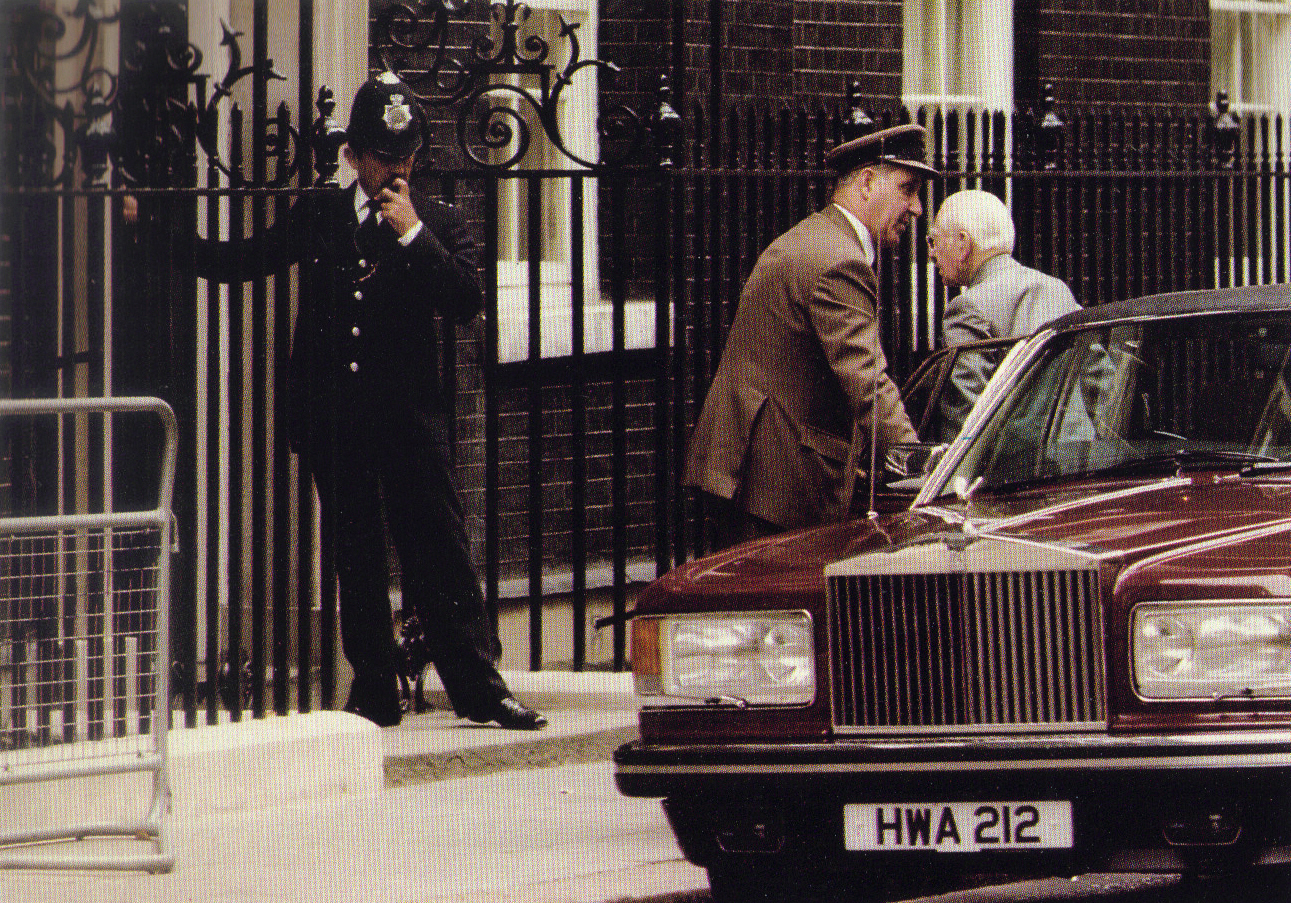 We loaded our hand luggage into the automobiles. I think Roderick Meredith rode back to London with the Cousins brothers. Mrs. Armstrong and I crowded ourselves into Dick's little Hillman-Minx and Dick drove us to London.