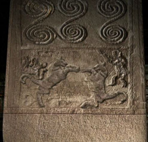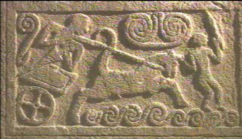Depicted on these grave stones is the Exile... Showing Pharaohs army pursuing the Israelites... Layed out like still frames of a movie...