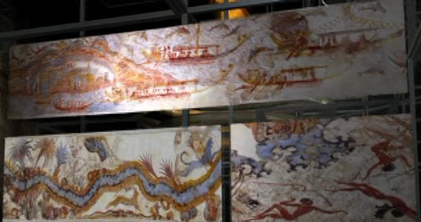 While digging at Santorini archeologist uncovered a painting of a journey from ancient Egypt to Greece dating back to the Exodus.... It is the oldest map in the world... Greek paintings and artifacts were also found in Avaris...... Showing there was contact between the two during the Exodus period...