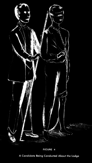 The candidate has no idea why this is done, except he is told that it is necessary the explanation must come later. The candidate is kept in a state of profound darkness and all is calculated to confuse and bewilder him. Once the hood-wink is placed over his eyes, he can see nothing and must rely totally on his other senses.