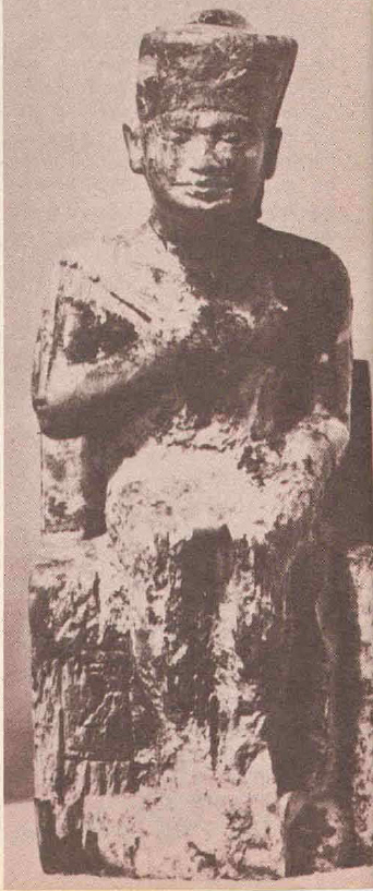 A badly damaged ivory statuette of Cheops from Abydos, Egypt. No other statues are known of him. The features of Cheops are distinctly non-Egyptian. Cheops built the great pyramid of Gizeh, near Cairo. It is the first and also the greatest pyramid ever built.