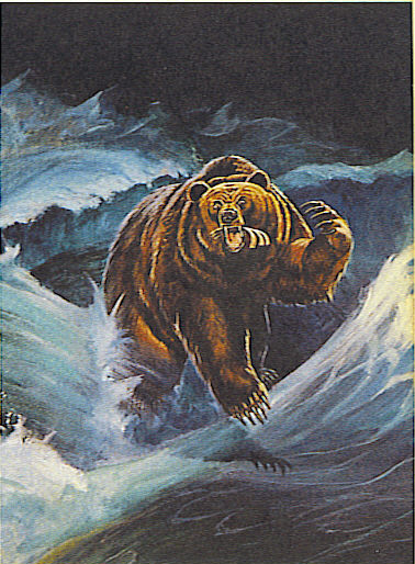 Daniel 7:5 And behold another beast, a second, like to a bear, and it raised up itself on one side, and it had three ribs in the mouth of it between the teeth of it: and they said thus unto it, Arise, devour much flesh. Image
