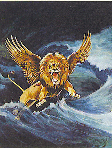 Daniel 7:4 The first was like a lion, and had eagle's wings I beheld till the wings thereof were plucked, and it was lifted up from the earth, and made stand upon the feet as a man, and a man’s heart was given to it." Image